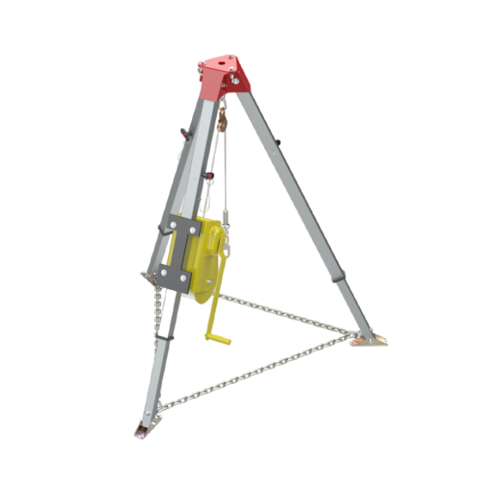 Трипод устанавливается над отверстиями диаметром от 0,9м до 1,5м. В сложенном состоянии имеет длину в 1,6м.